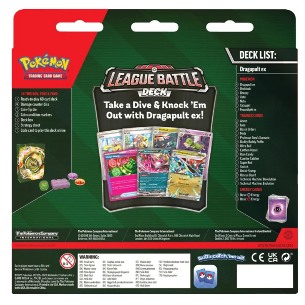 The Pokemon Dragapult ex League Battle Deck include competitive level cards. Dragapult ex cards are the most well-known and widely used deck.In each box, you’ll find: